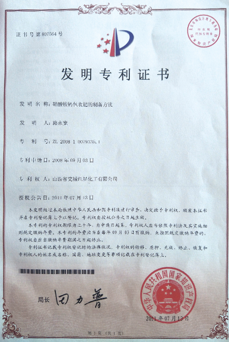 Patent certificate